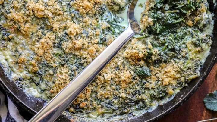 This easy creamed spinach recipe is made with delicious boursin cheese and six other ingredients for the perfect side dish that's low carb and keto friendly too.