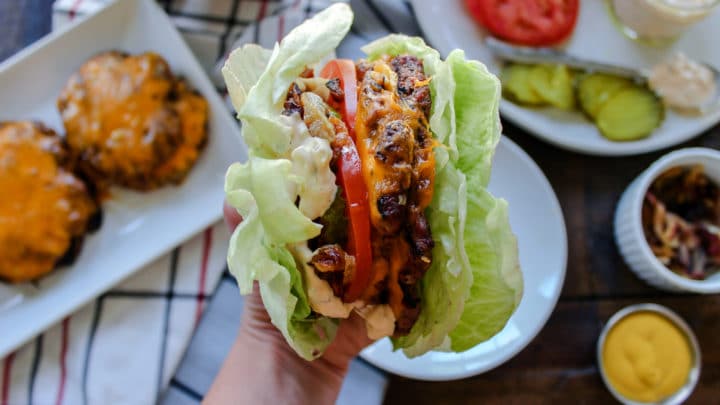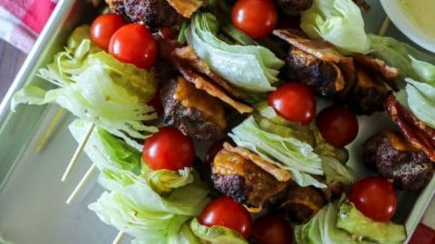 Cheeseburger on a stick anyone? These kebabs are the perfect deconstructed burger appetizer that are perfect for a healthier, keto friendly way to have your burger and eat it too!
