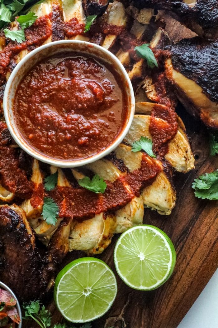 This Mexican inspired butterflied whole chicken recipe is packed with rich tomatoes, chipotle peppers in Adobo sauce, and smoked to perfection on the grill. .