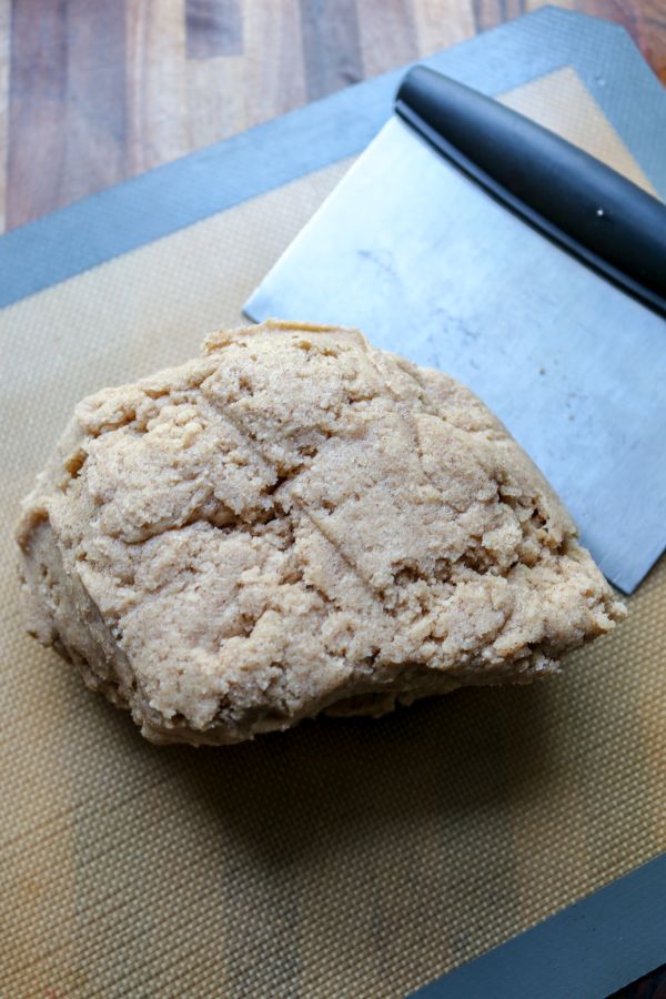 - Add in the eggs, melted butter, extract, and vinegar. Use a hand blender to combine everything to form a dough (will be similar to a cookie dough). Scrape down the bowl and form the dough into a ball. Divide the dough into two equal pieces.