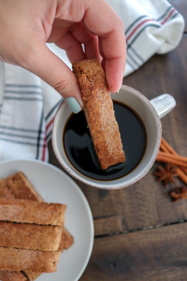As a self proclaimed black coffee drinker (and all around coffee snob), I can absolutely say I do love a good biscotti style cookie. A rich cup of my favorite Ethiopian blend and the sweet cinnamon flavor of this snickerdoodle style biscotti makes the perfect pair.