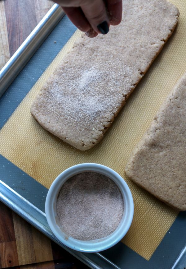 To infuse the biscotti and transform it into a delicious snickerdoodle, I brushed the tops with the cinnamon and low carb sugar mixture before the first bake, and sprinkled more on the sides when I baked again. So easy!