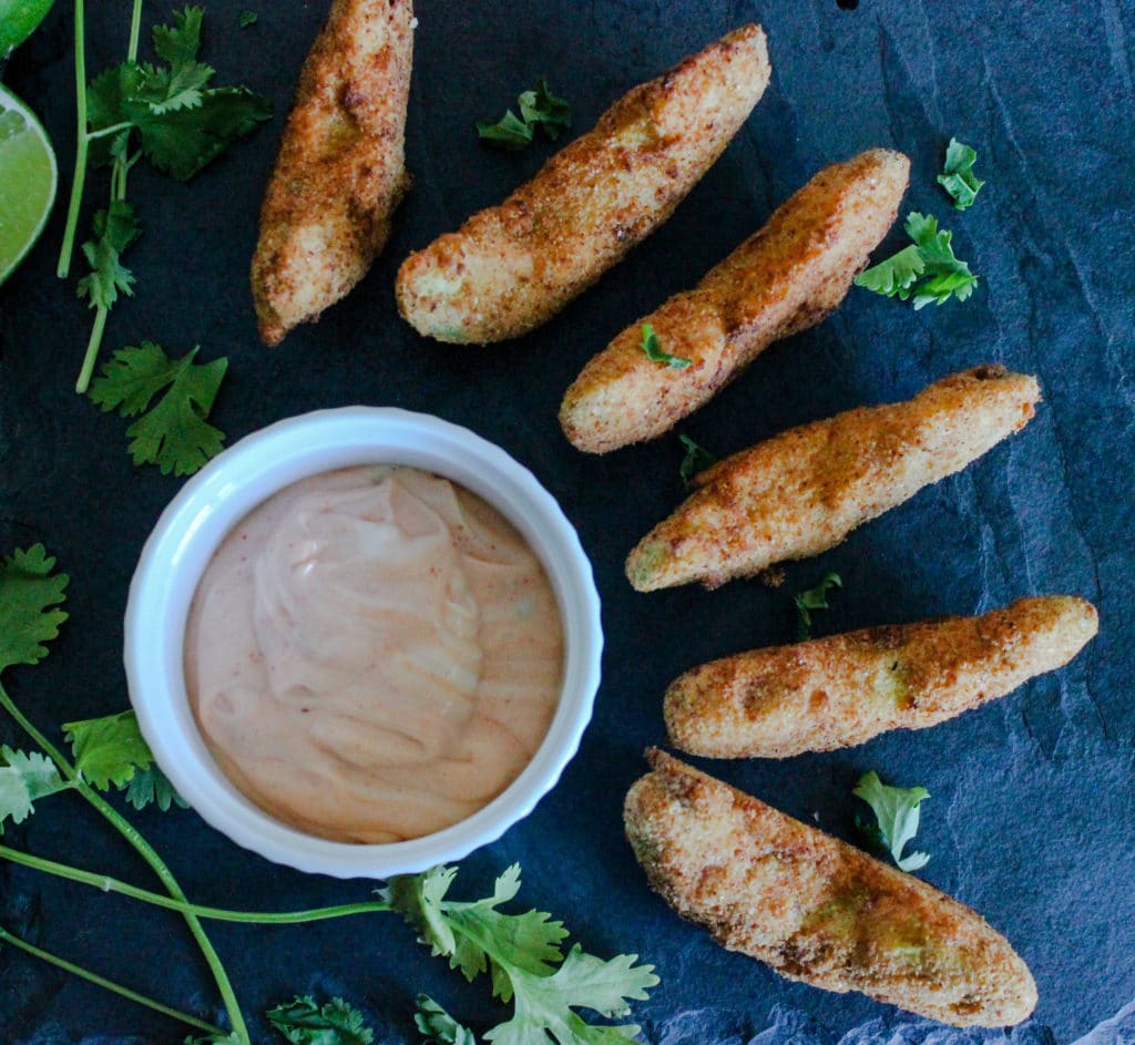 Learn how to make delicious, low carb seasoned almond flour coating over perfectly ripe avocado slices perfect for dipping. The only avocado fries you will be making from here on out!