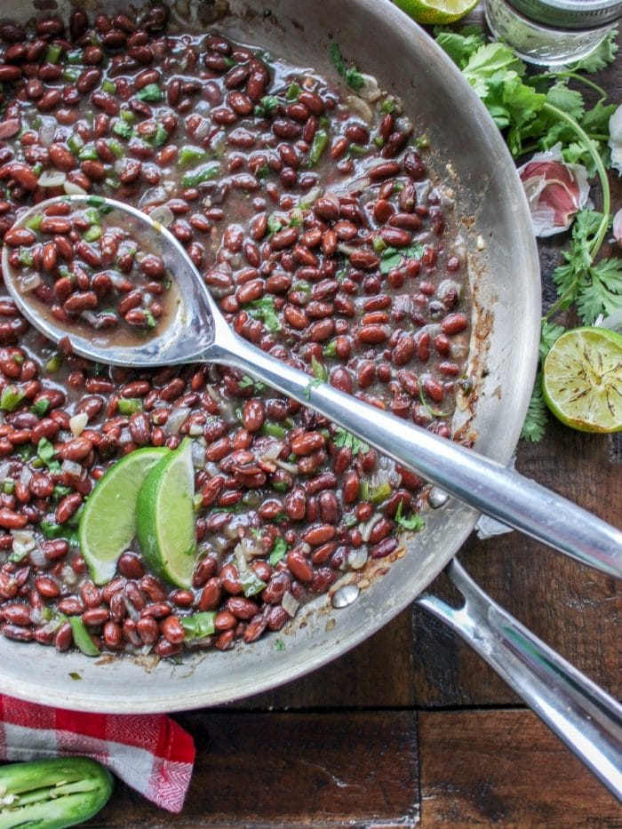 I prefer to serve my beans with Mojo chicken or pork. My suggestion is to get these beans going (in 10 minutes or less) and then cook/prep your other food so they have plenty of hands-off time to develop a stronger flavor profile.